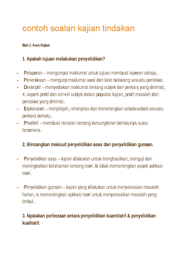 Contoh soalan kajian tindakan Bab 1. Apa yang dikongsikan didalam buku kajian kualitatif dan analisis temu bual1. Muat turun halaman 1-21 di AnyFlip.